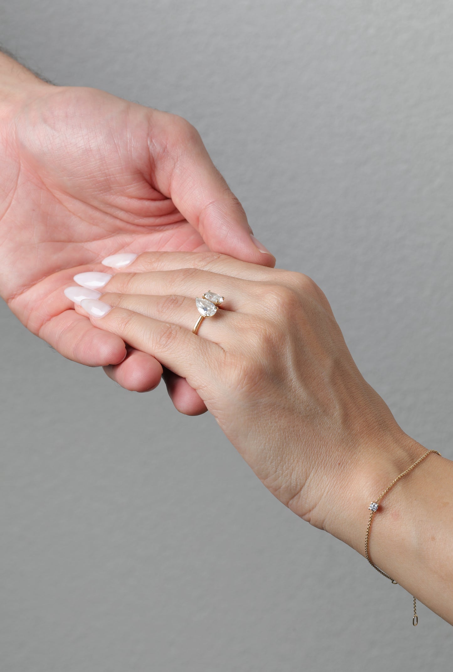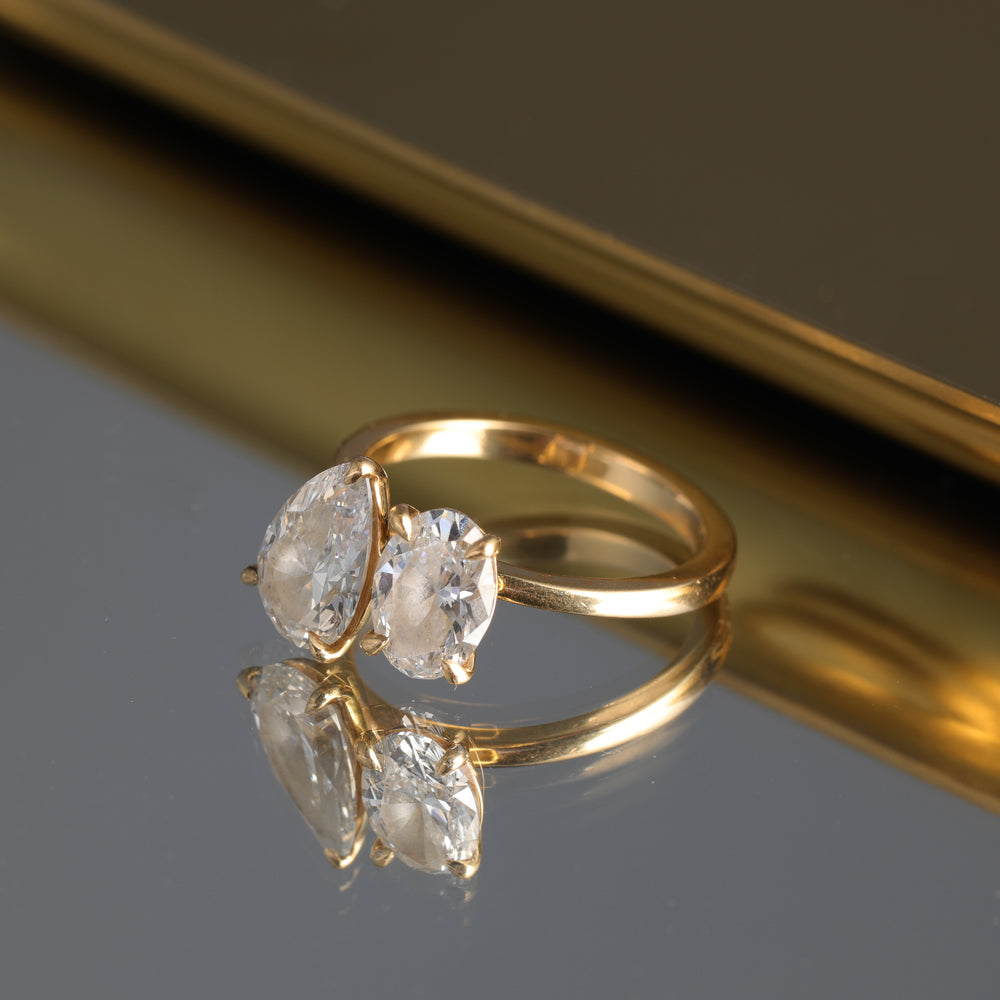 the éternelle engagement ring is a celebration of eternal love — where two distinct forms come together in perfect harmony. featuring a pear-shaped and an oval diamond side by side, this signature amarée design symbolises two souls, uniquely shaped by their journeys, choosing to walk as one.